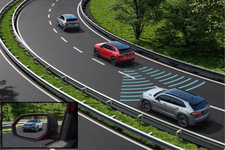 Hệ thống sẽ cảnh báo sự nguy hiểm khi chuyển làn đường, biểu tượng cảnh báo sẽ xuất hiện trên gương chiếu hậu nếu có phương tiện xuất hiện trong khu vực điểm mù của xe.